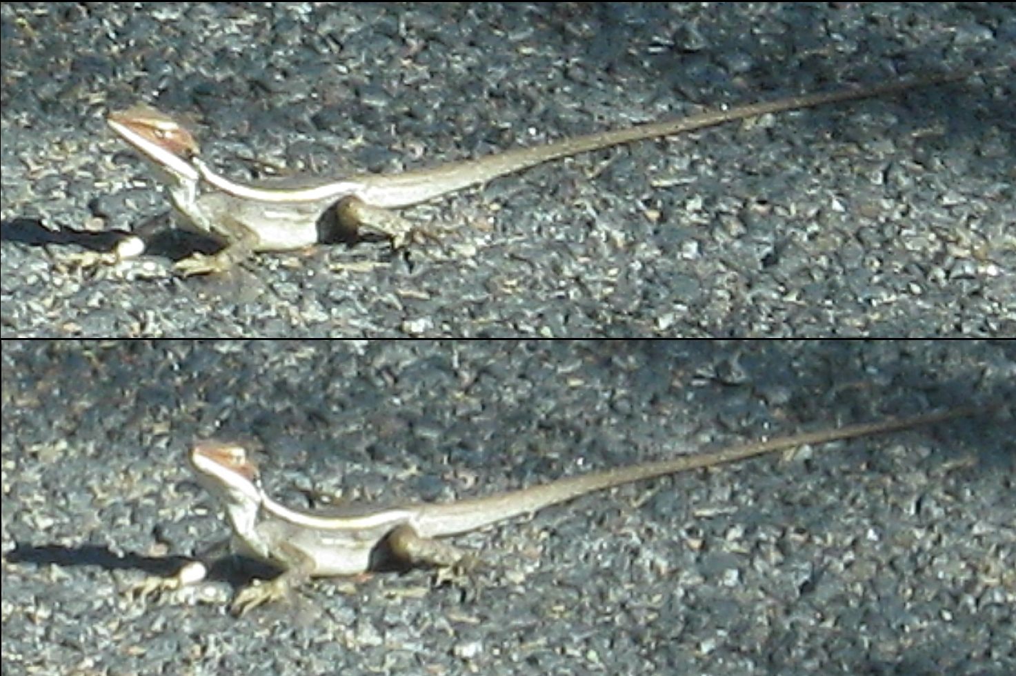 Auf der Straße sonnte sich ein Langnasendrache. Sie war eine der wenigen wilden Echsen