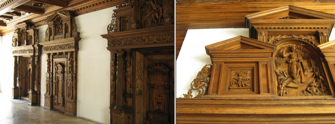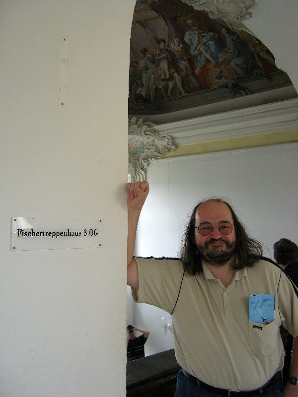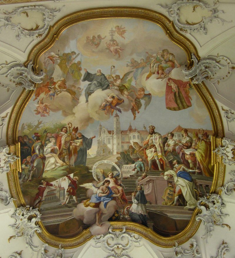 am Treppenaufgang verdeutlicht, auf dem der Abt vom Kaiser eine Urkunde erhält.