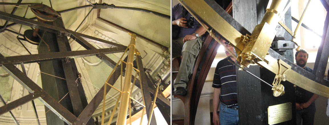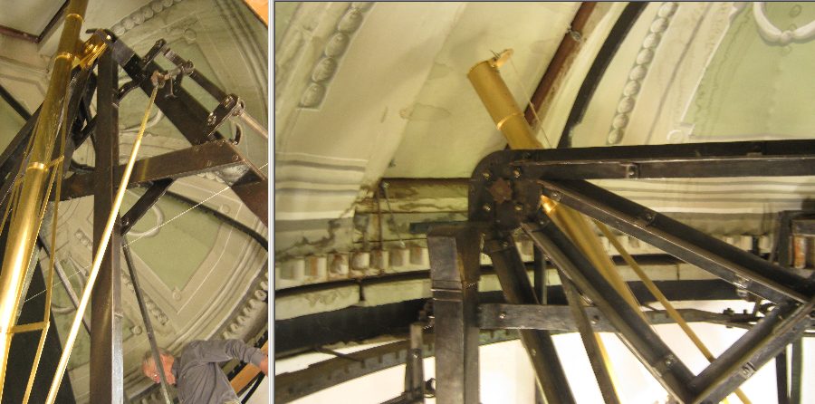 Der Quadrant wurde über innenliegende Lotseile justiert. Unten sind die Fenster zu sehen.
