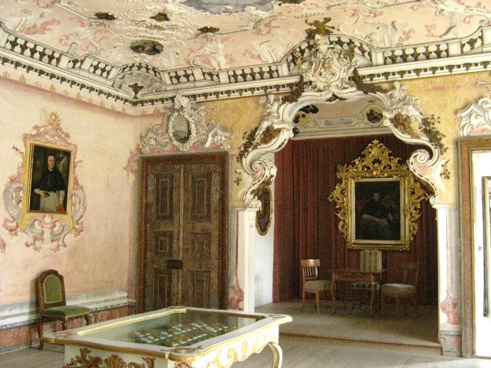 Schlafzimmer des Fürstabtes mit einem Portrait des Bauherren.