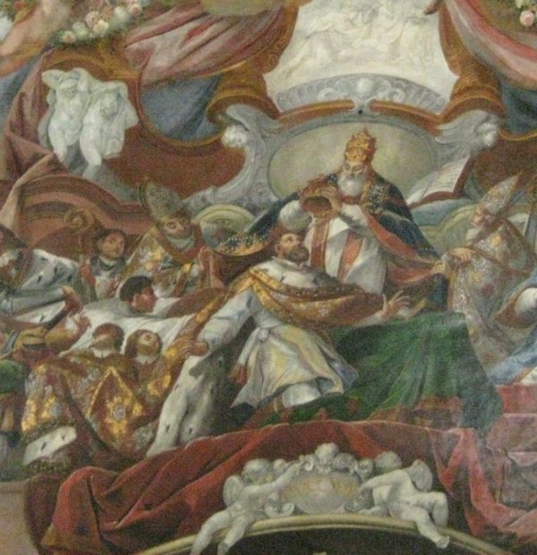 Karl der Große nimmt einen besonderen Platz ein. Im Deckenfresko