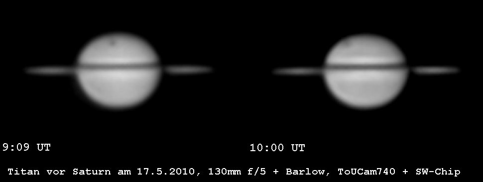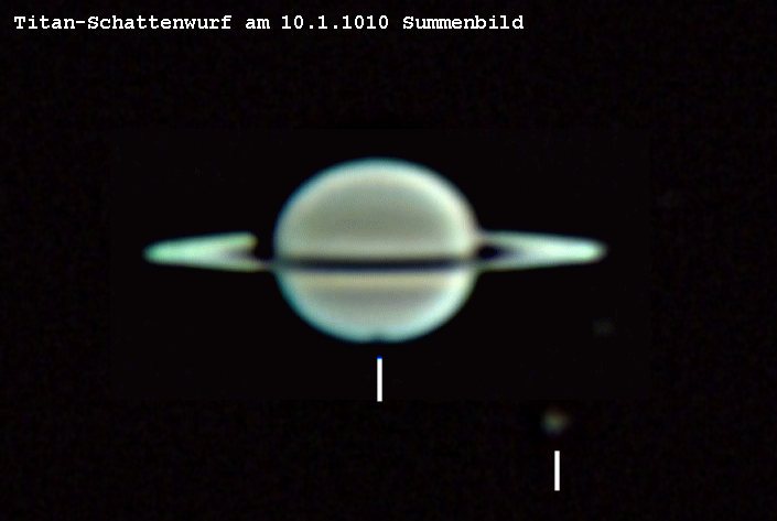 Am 10.1.2010 lief Titan weit unterhalb der Saturnscheibe durch, doch sein Schatten