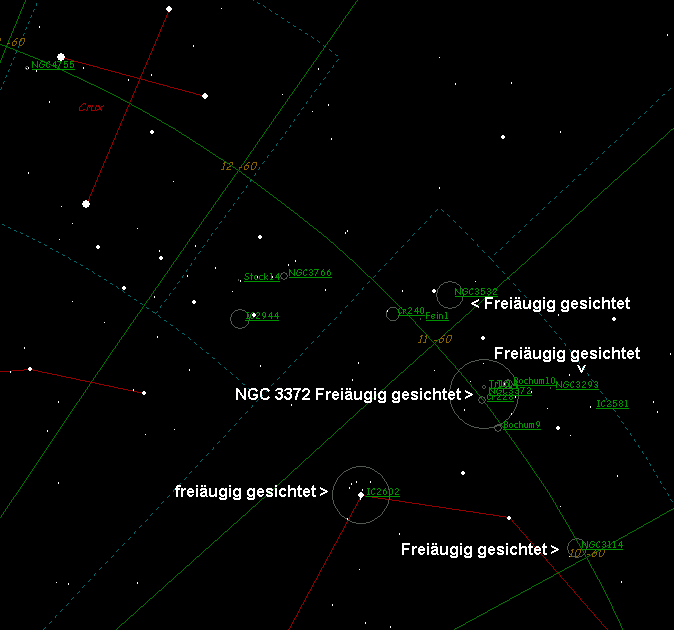 Die offenen Sternhaufen nach S9 im Karkoschka wurden alle freiäugig gesichtet mit Ausnahme von NGC 2808.