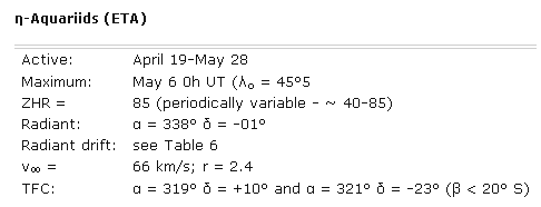 Die Eta-Aquariden sind am Südhimmel ein wichtiger Strom der zweiten Nachthälfte.