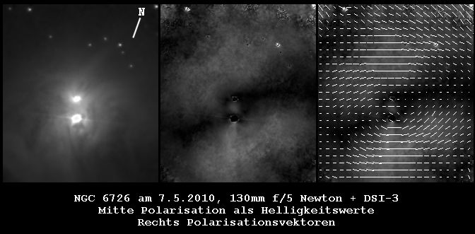 Neben NGC6729 zeigt auch NGC6726/27 starke Polarisationseffekte