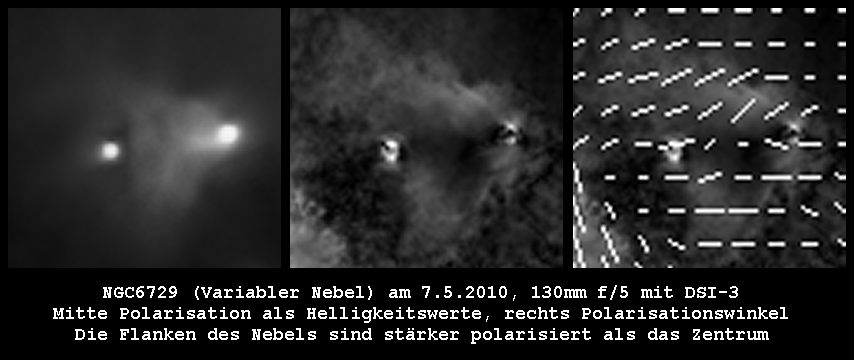 NGC2261. Allerdings fehlt hier das Drehen des Polarisationswinkels zwischen rechter und linker Kante.