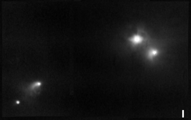 Das Bild wurde absichtlich so orientiert, das die beiden Sterne vertikal übereinander stehen.