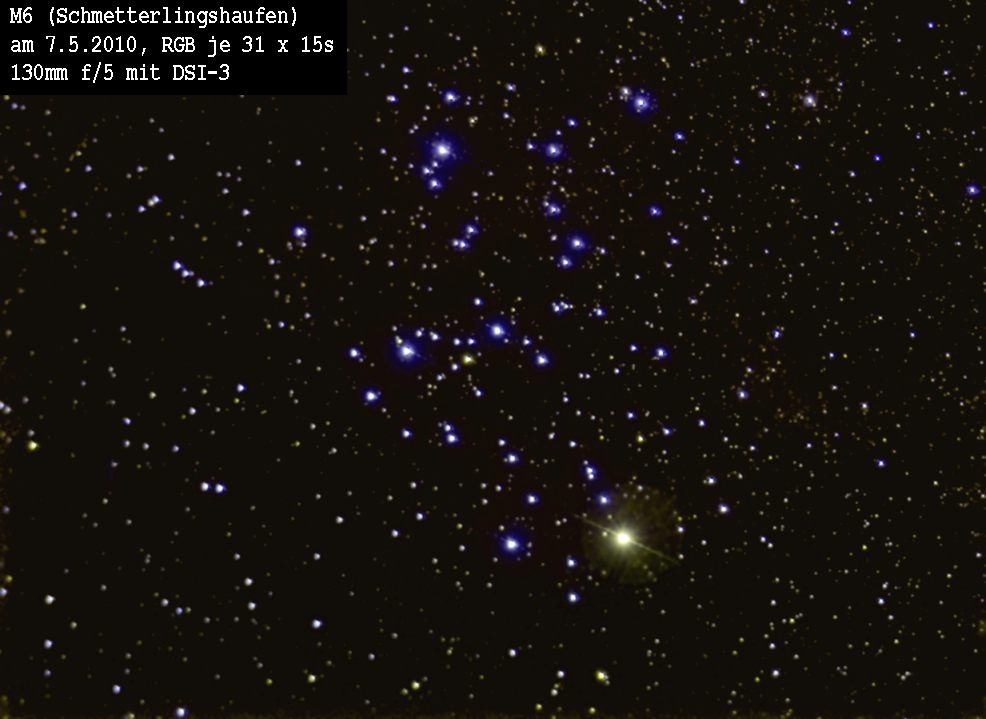 M6 der Schmetterlingshaufen ist einer der hellsten offenen Haufen des gesamten Himmels.