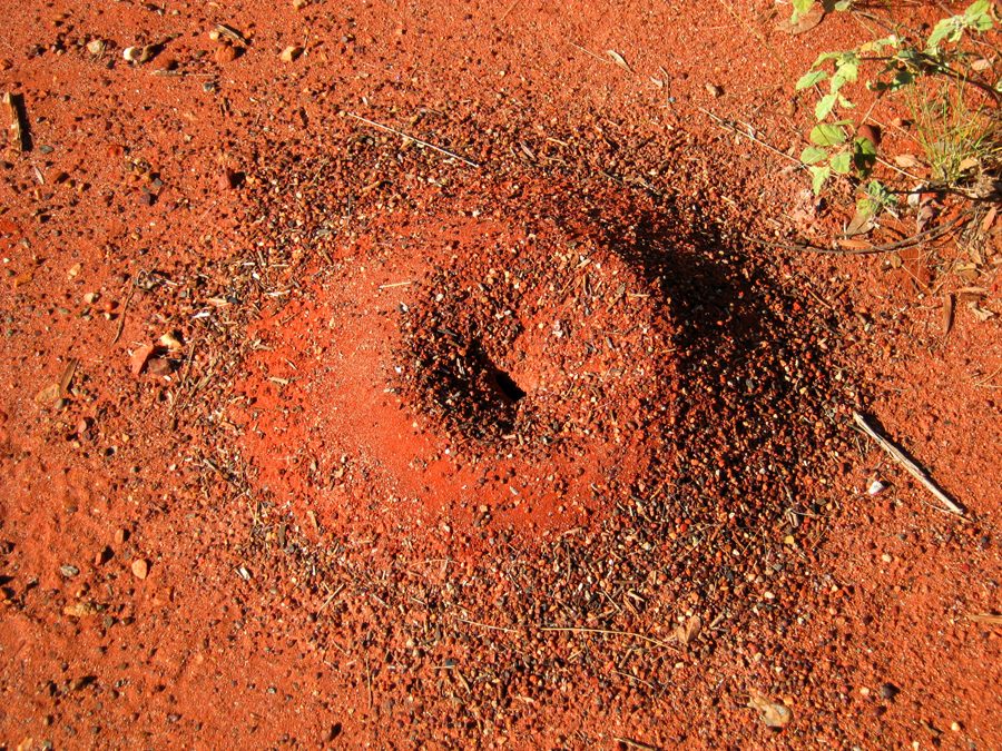 In den Trichtern liegen Ameisenlöwen auf der Lauer.