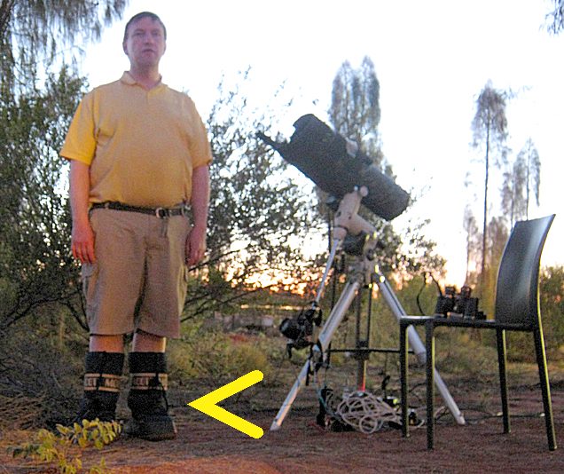 Das Bild zeigt den Blick zurück auf Yulara. Rechts ist noch partiell die Venus zu sehen