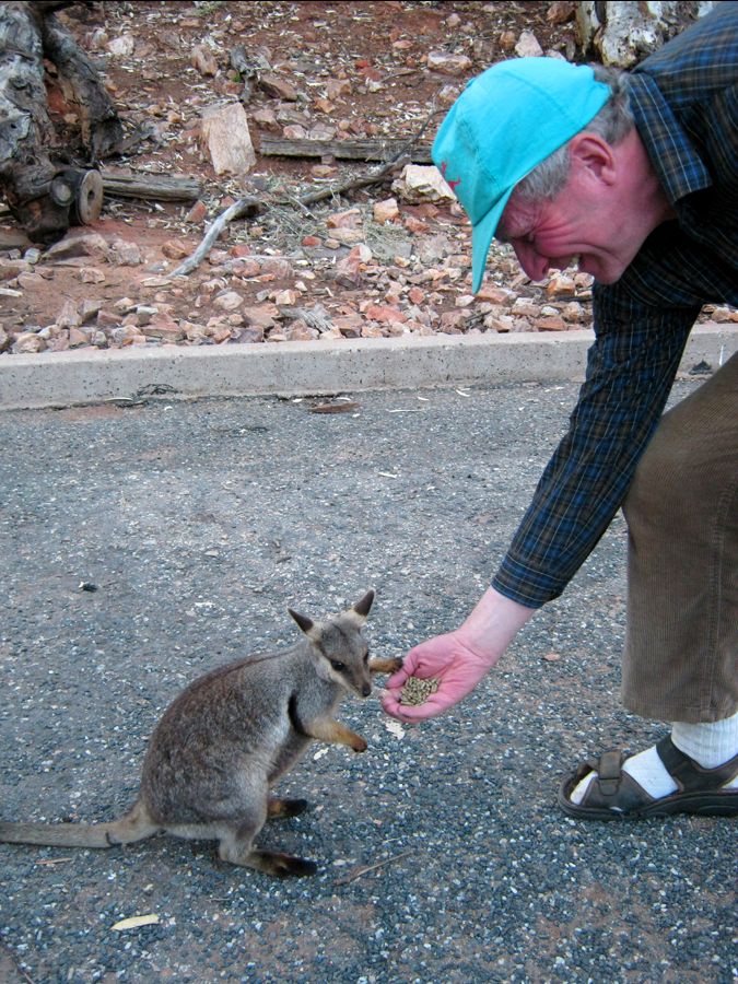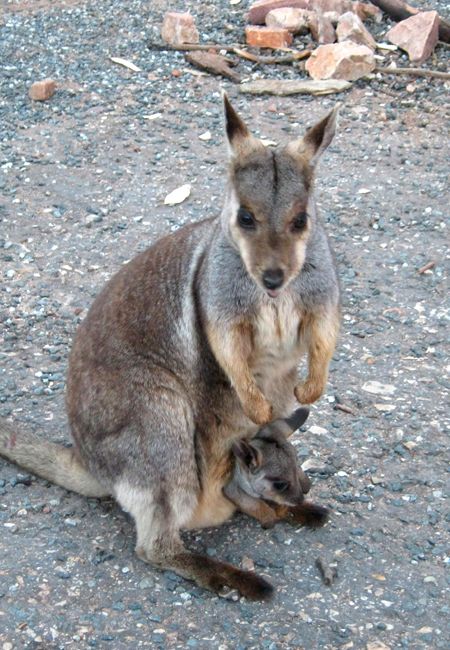 die halbzahmen Wallabies die sich gern von den Touristen füttern lassen.