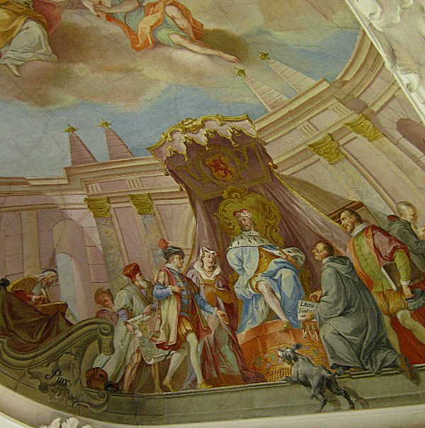 Karl der Große nimmt einen besonderen Platz ein. Im Deckenfresko