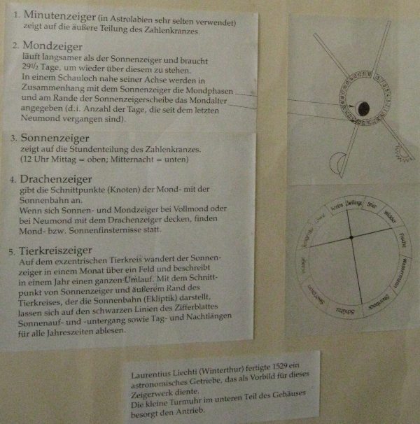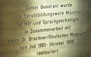 Das Gerät ist heute wieder voll funktionsfähig. Der Azimut wurde mit einem Zeiger am Mauerkranz gemessen