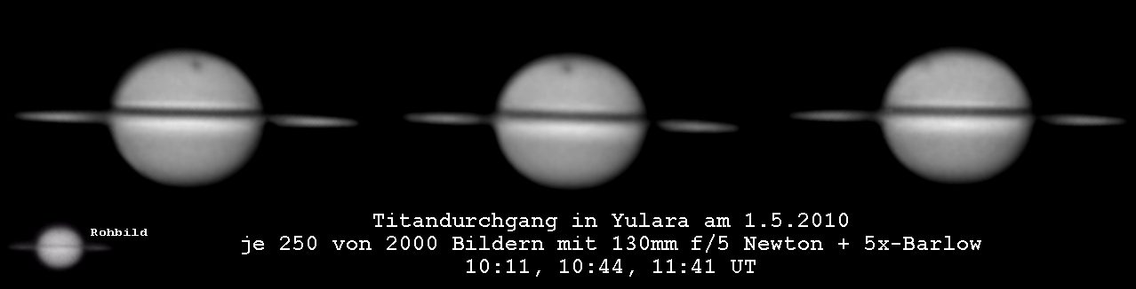 Am 10.1.2010 lief Titan weit unterhalb der Saturnscheibe durch, doch sein Schatten
