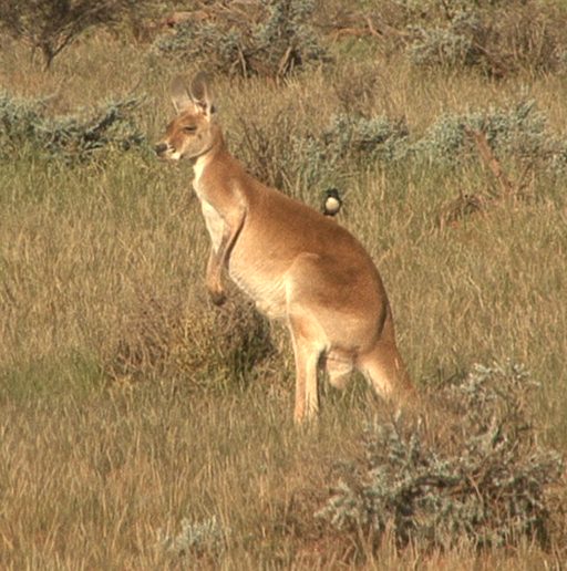 Die Roten Känguruhs werden bejagd und sind sonst eher scheu. Von der Astronomie war das Tier