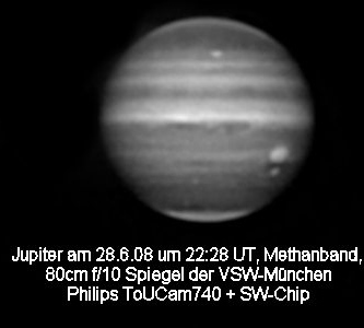 Das Bild der Gasplaneten ist im Methanband und im Visuellen weitgehend
