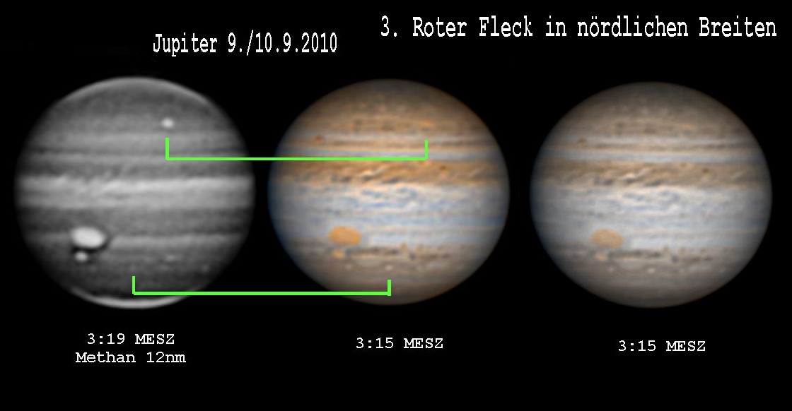 2007 hatte der Jupiter zeitweise bis zu 3 Rote Flecken