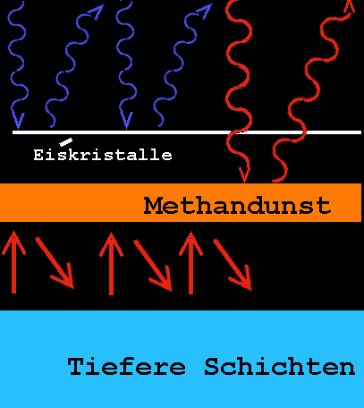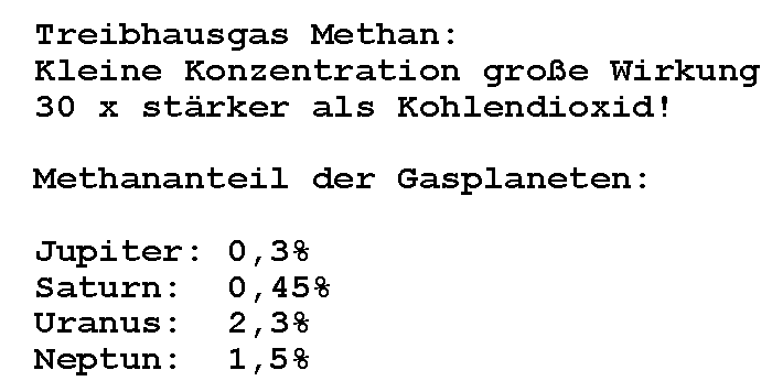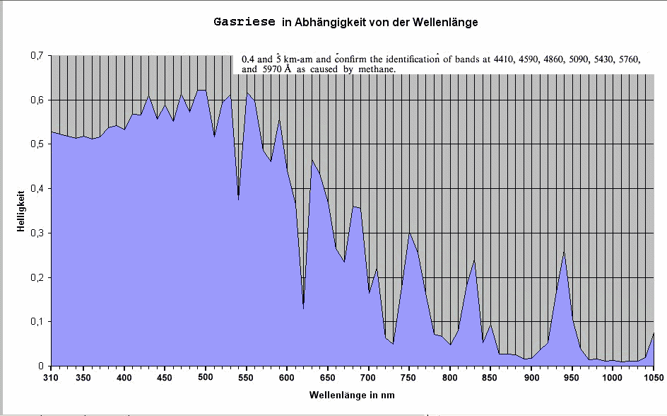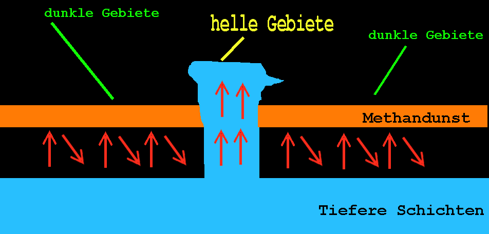 - Aus der Helligkeit im Methan lassen sich Aussagen über die