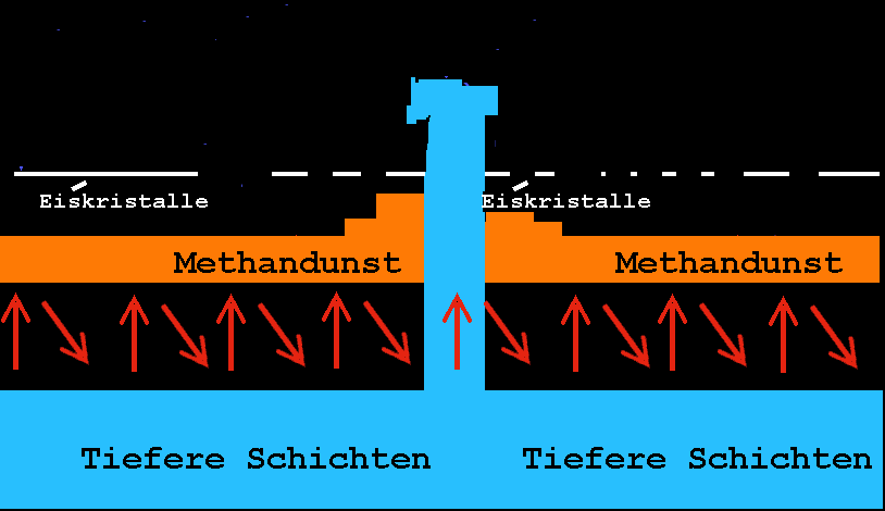 -dort wo Gas aufsteigt wird der Methandunst zur Seite geschoben