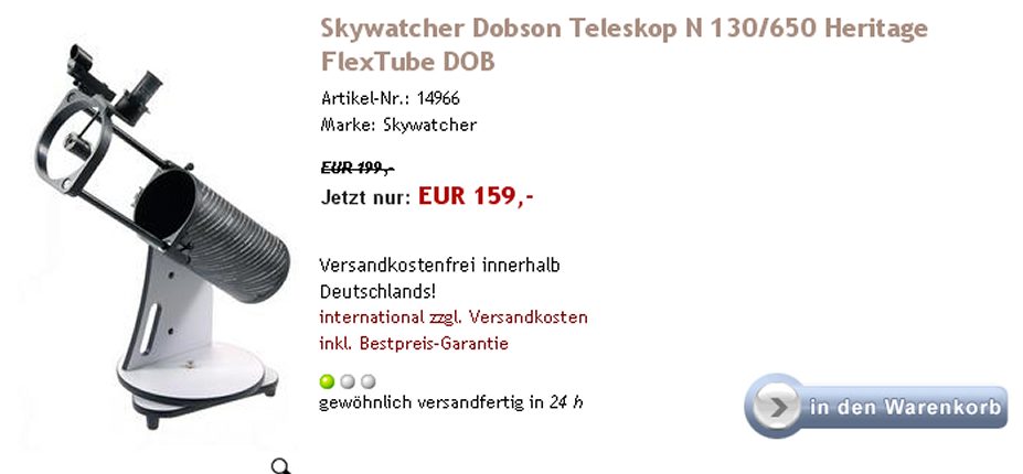 Es wurde lediglich ein 130mm f/5 Newton eingepackt.