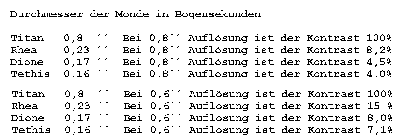 daher bei einem Seeing, dass die Titanscheibe selbst nicht auflöst