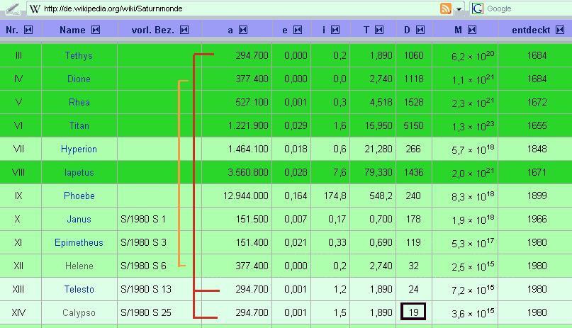 Titan und Rhea Ereignisse gibt es nicht mehr, aber bei Dione und Tethis