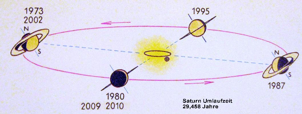 Saturn umrundet die Sonne einmal in 30 Jahren alle 15 Jahre kommt es zu einer Ringkantenstellung.
