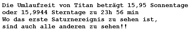 den Saturnmond Titan von Europa aus unbeobachtbar.