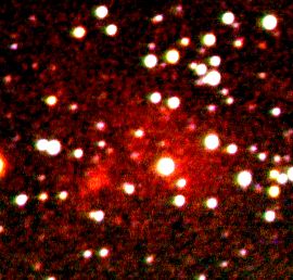 Sternentstehungsgebiet nur ein schwacher Bogen in der Nähe eines 8 mag-Sternchens zu sehen.