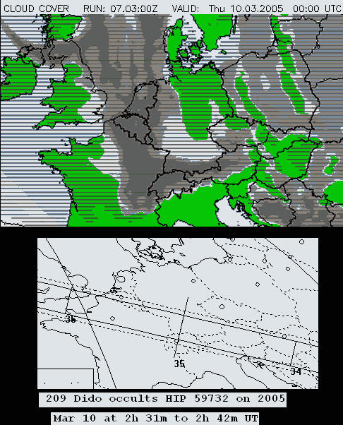 Sternbedeckung durch Dido leider nur 3 erfolgreiche Beobachtungen. Sie sind auf der folgenden Karte