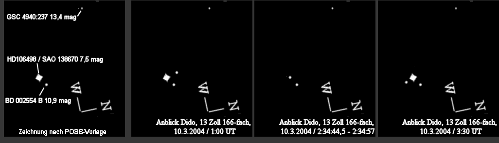 1:00 UT und 3:30 UT war Dido gut zu sehen.