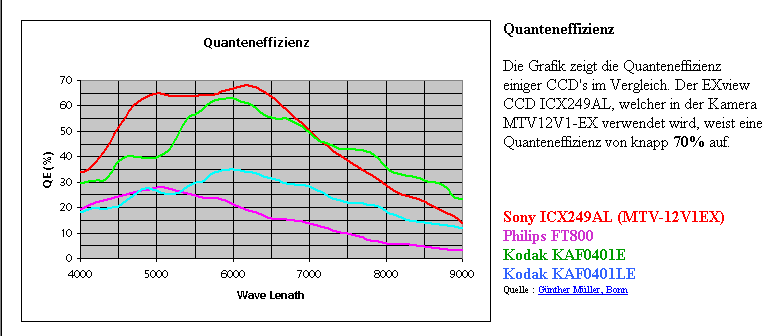 -hohe Empfindlichkeit auch in den spektralen Randbereichen UV und IR