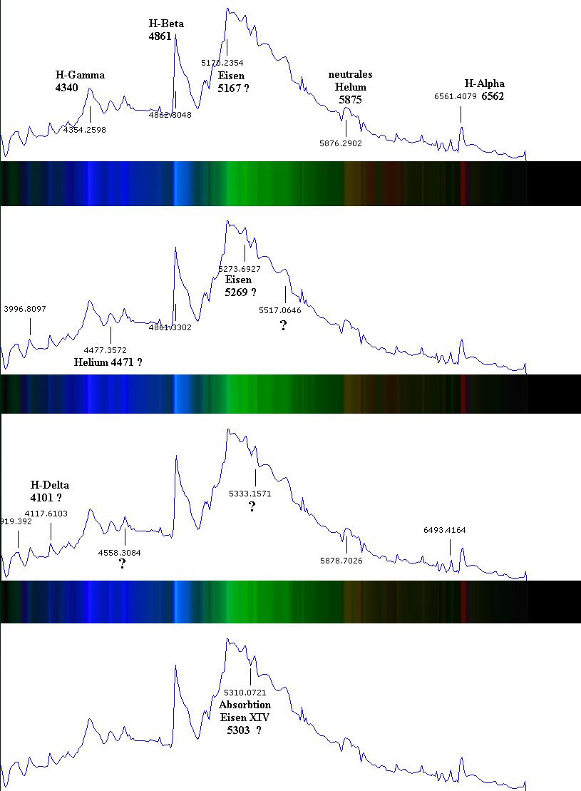 Die Absorbtionslinien des Sterns ließen sich gut in den Emissionslinien