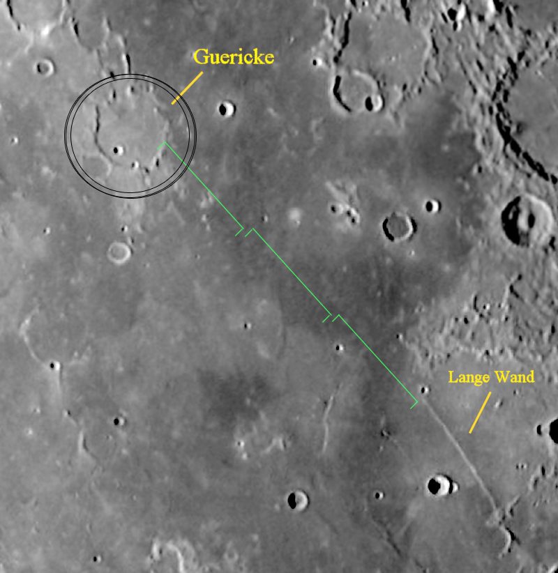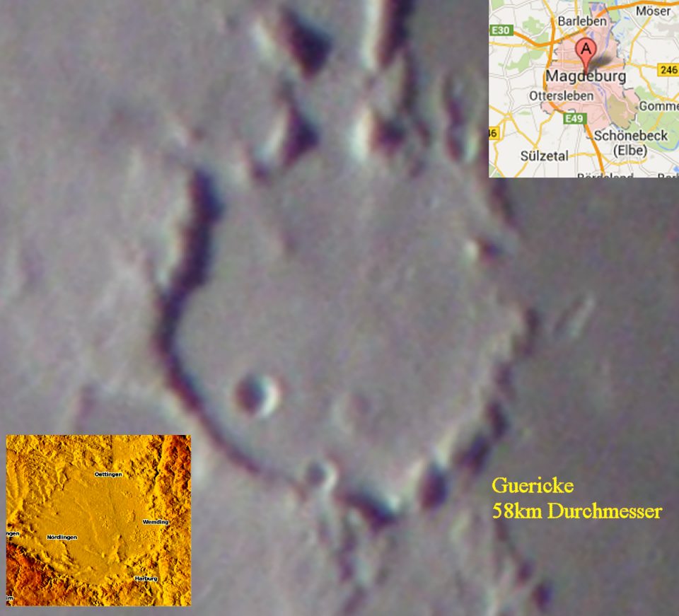 Guericke ist mit 58km ein mittelgroßer Krater -