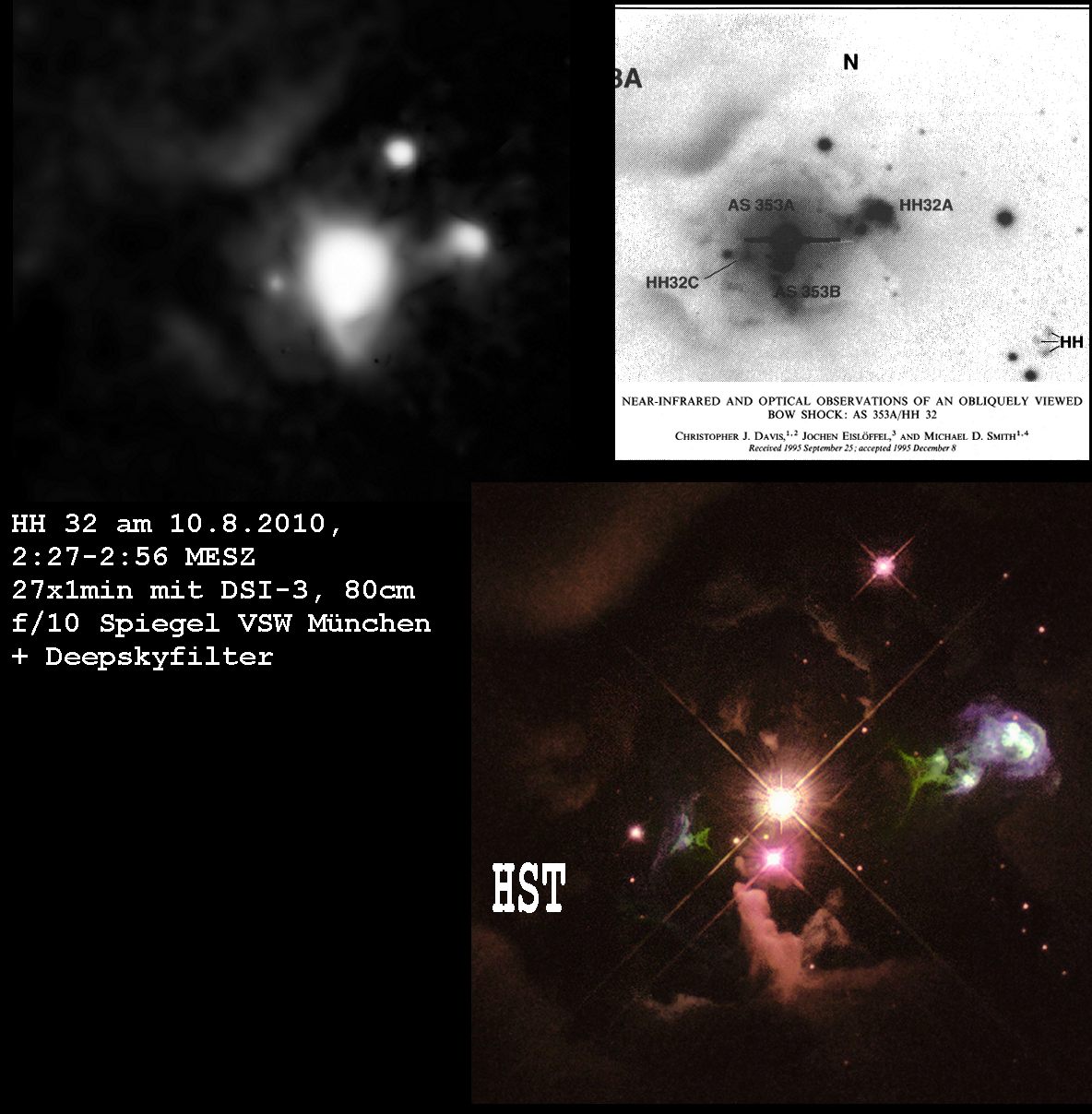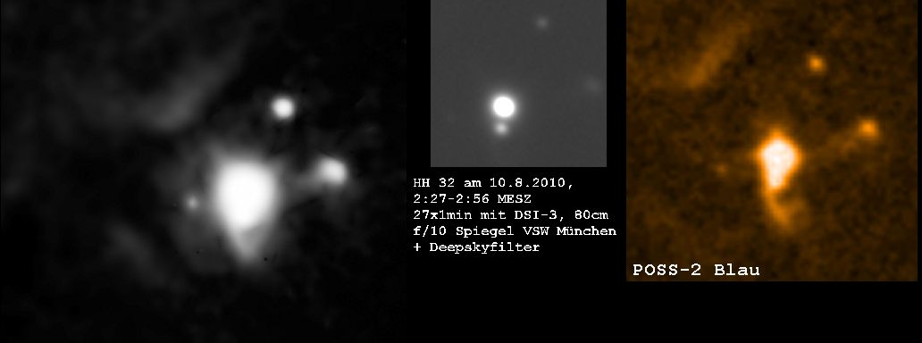 HH32 zählt zu den helleren Herbig-Haro-Objekten und steht