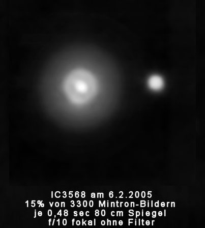 Obwohl IC3568 nur 18 Bogensekunden mißt, sind bei diesen Mini-PN