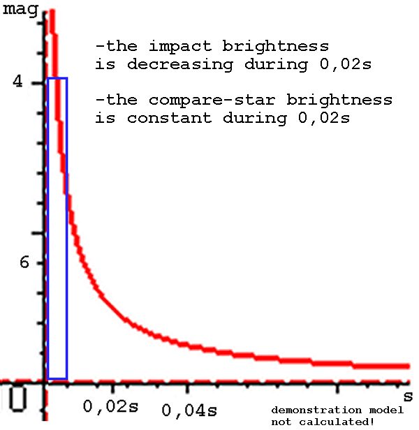 Die Helligkeit des Impaktes ist nicht exakt zu photometrieren, da dass Signal