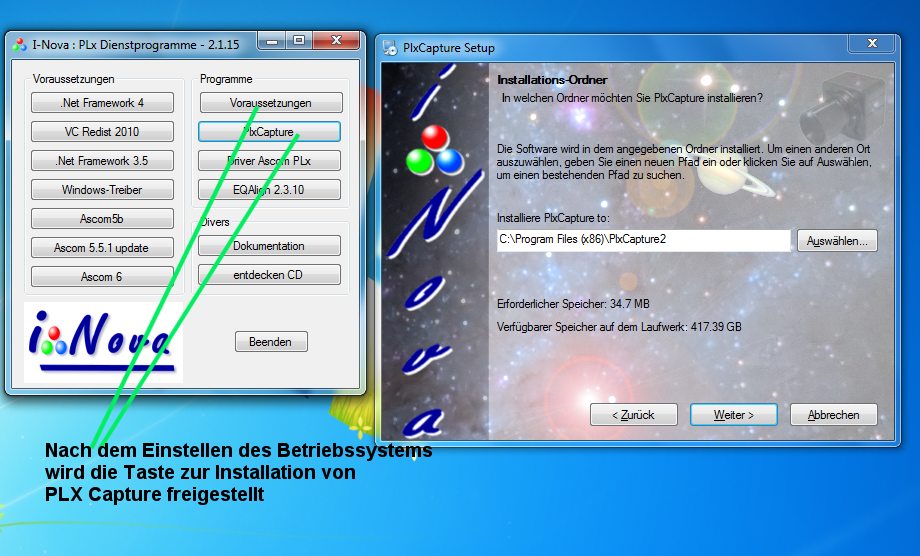 Nach der Wahl des Betriebssystems wird die Installation von PLXCapture