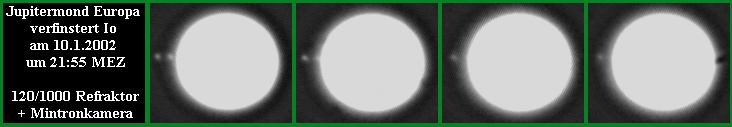 Verfinsterungen. Auf dem oberen Bild verschwindet der Mond Europa