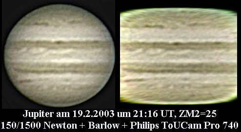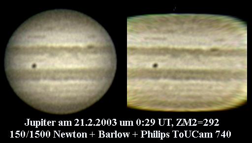 Vom 19. bis 21.2.2003 war das Seeing ausreichend gut,
