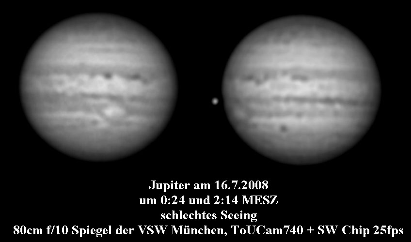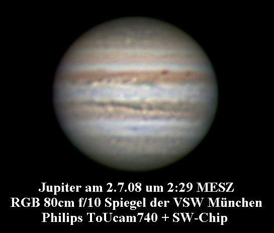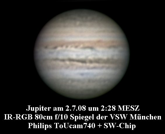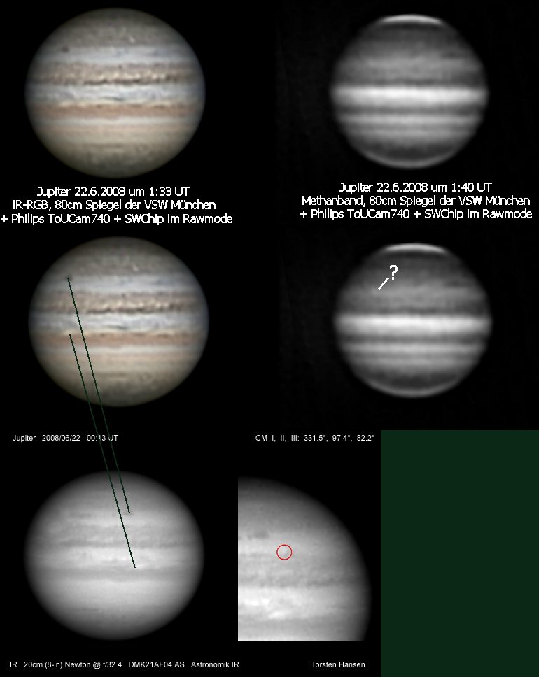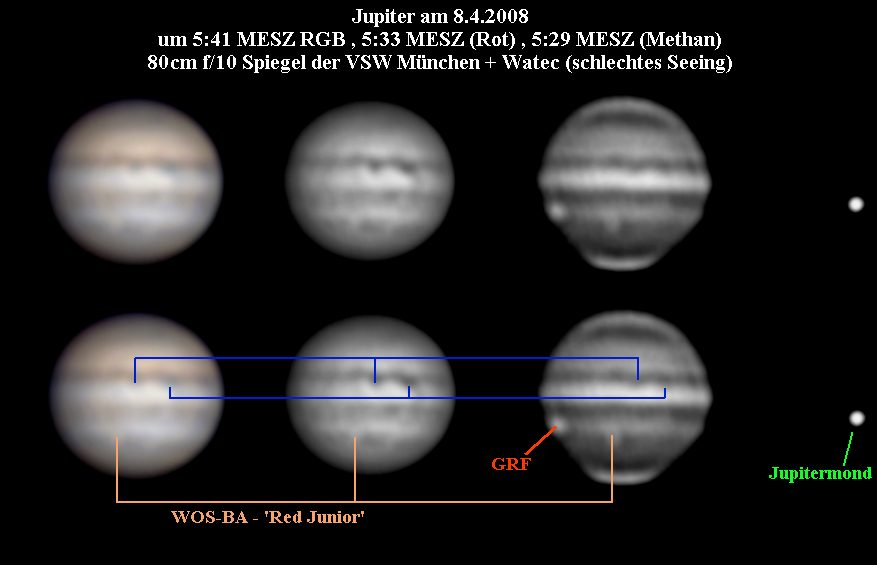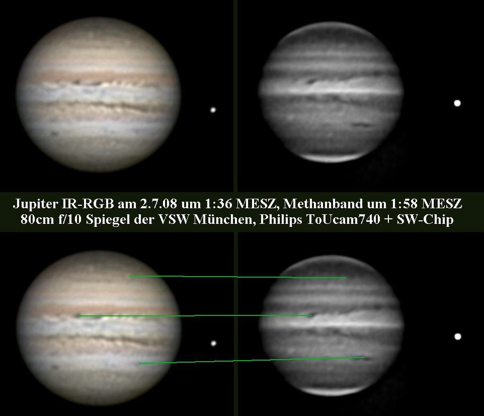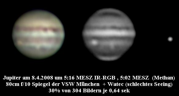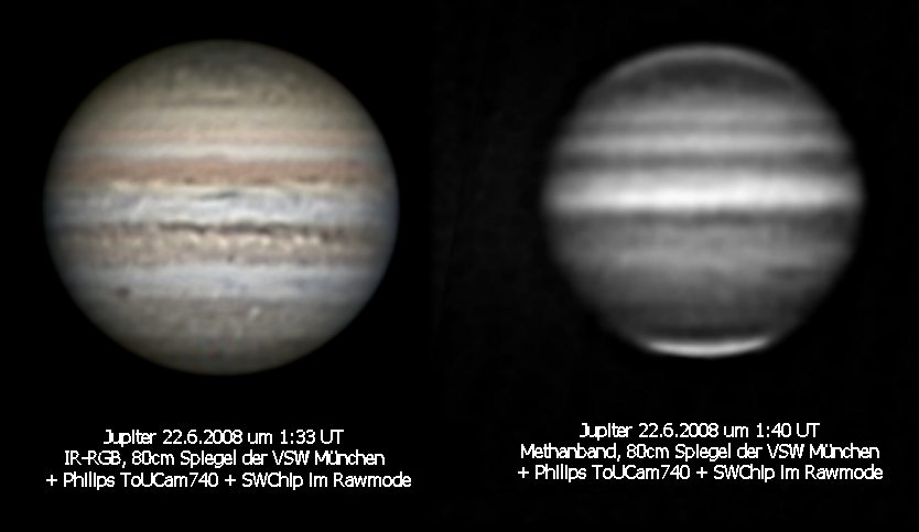 Weitere Jupiterbilder waren mit höherer Auflösung möglich. In der Regel wurde versucht aus Methanband und
