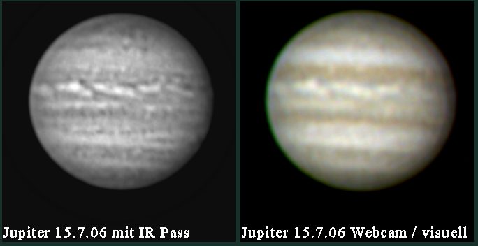 vor die Webcam ein IR-Passfilter geschraubt. Durch die größereWellenlänge ergibt sich ein wesentlich ruhigeres Bild.