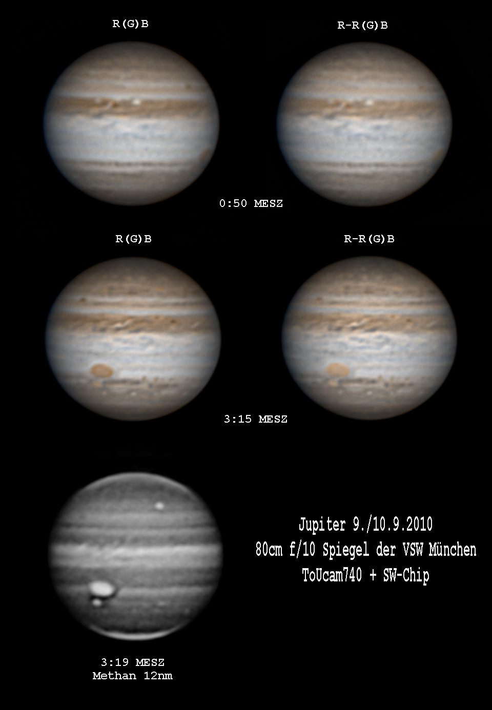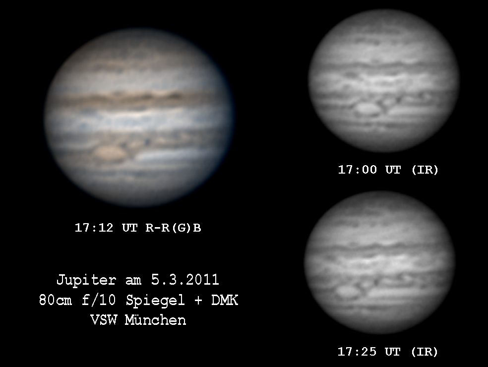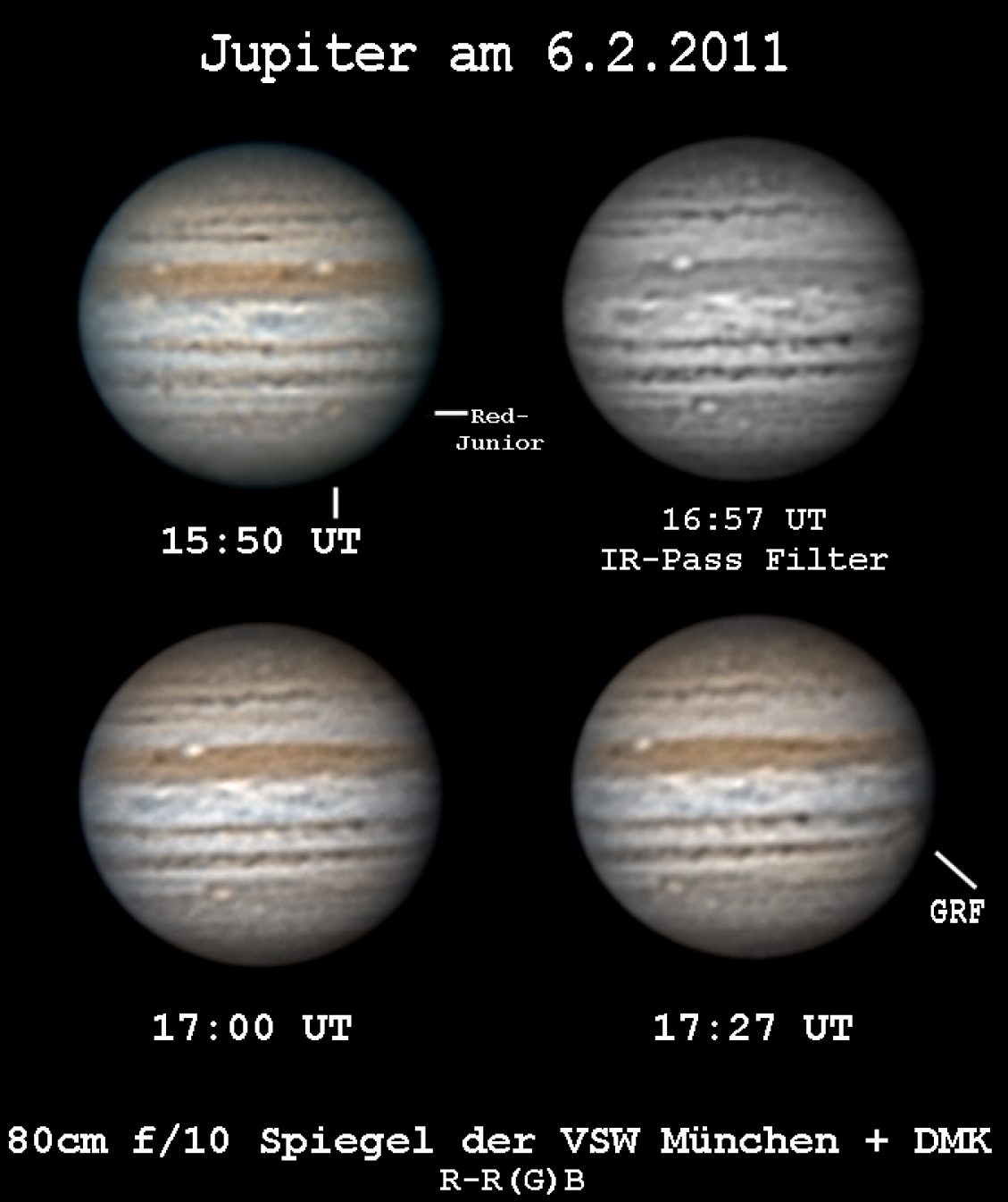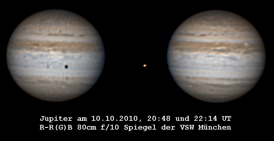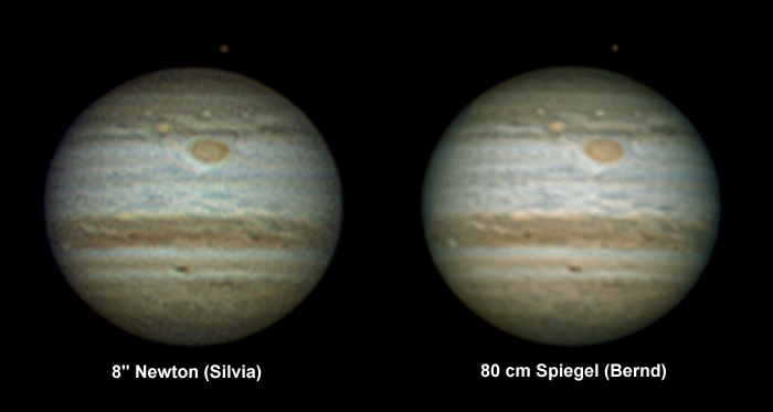 Interessant ist der Vergleich mit dem Jupiterbildern 10 Tage zuvor.
