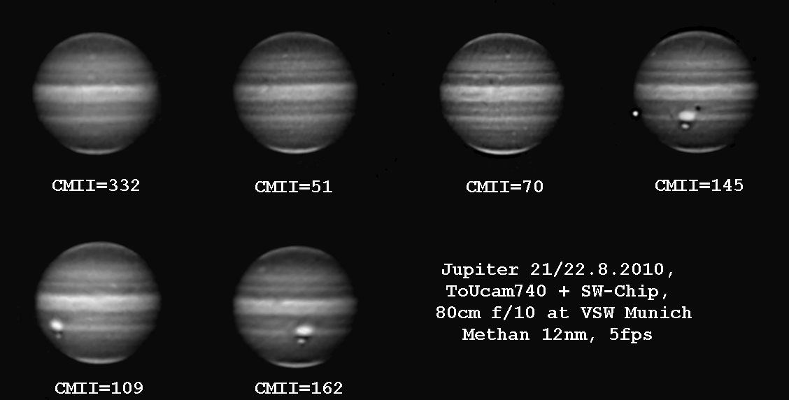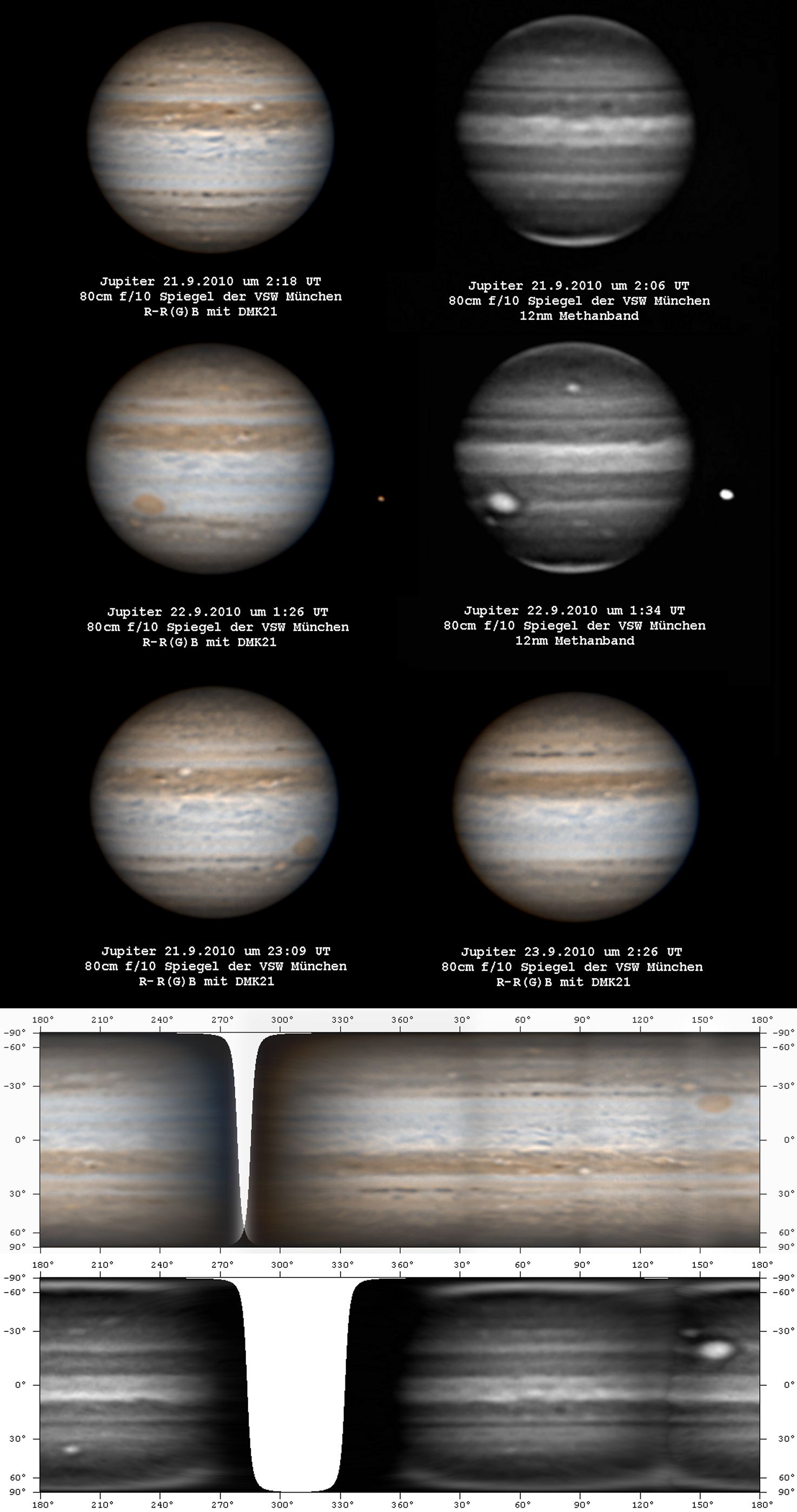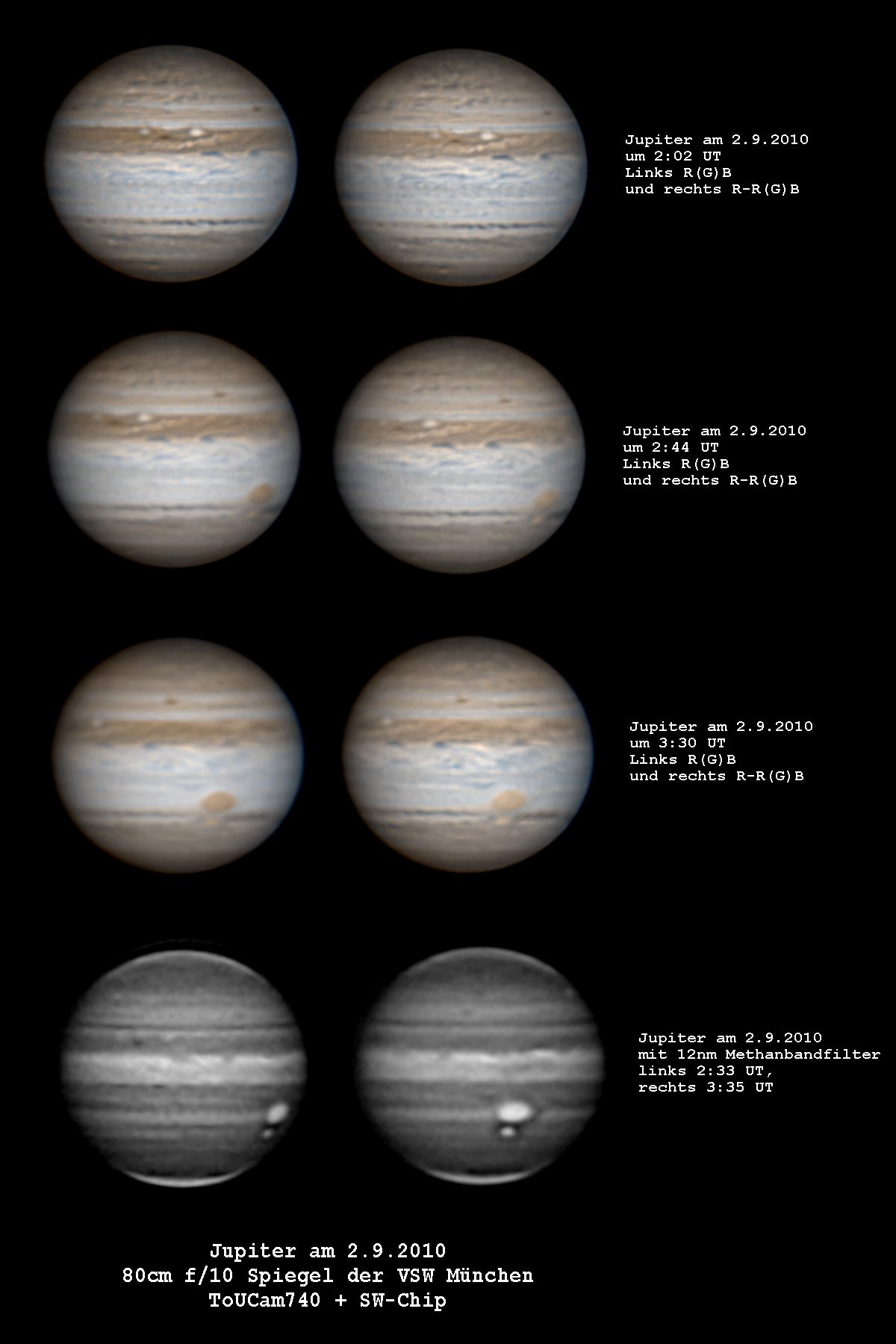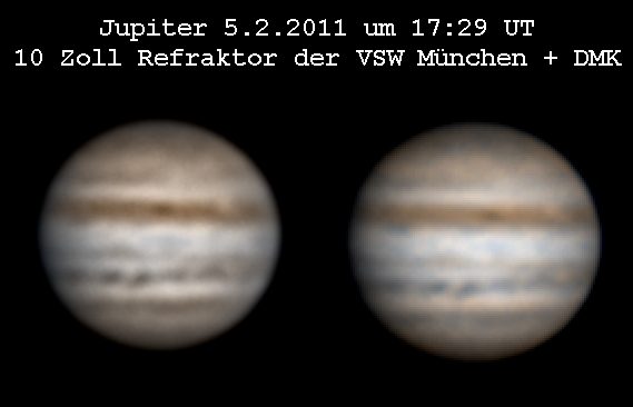 Interessant ist der Vergleich mit dem Jupiterbildern 10 Tage zuvor.