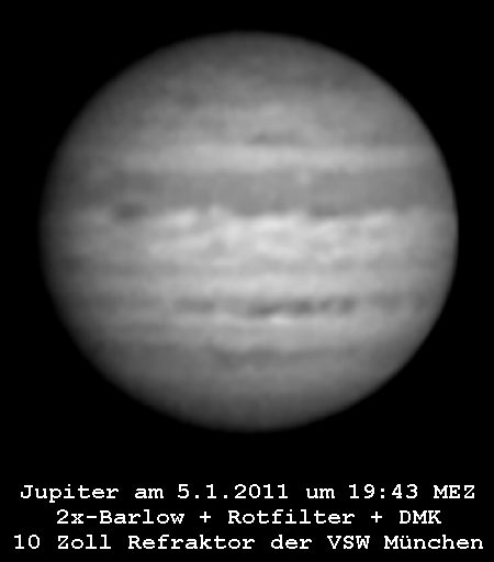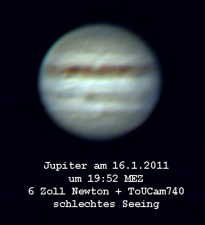 Mehrfach war das Seeing unzureichend. Ein Bild vom 5.1.2011 zeigt an der Position des SEB