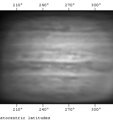 Bei der Polarprojektion ist die methanhelle Polkappe mit starken Artefakten belastet,