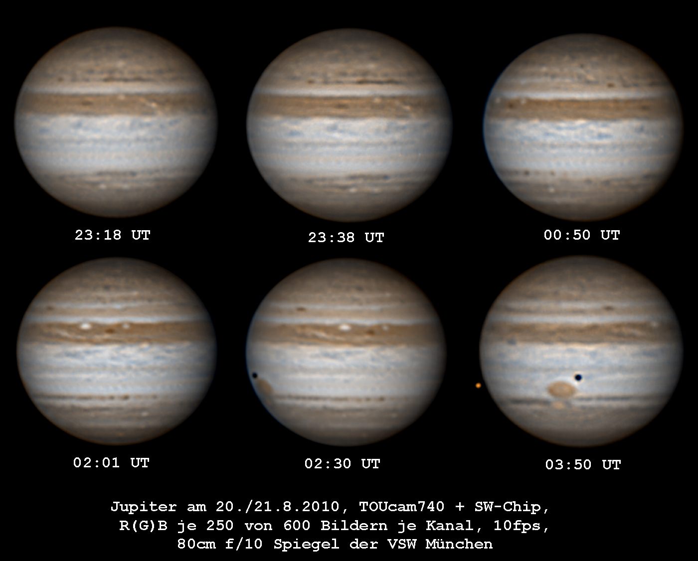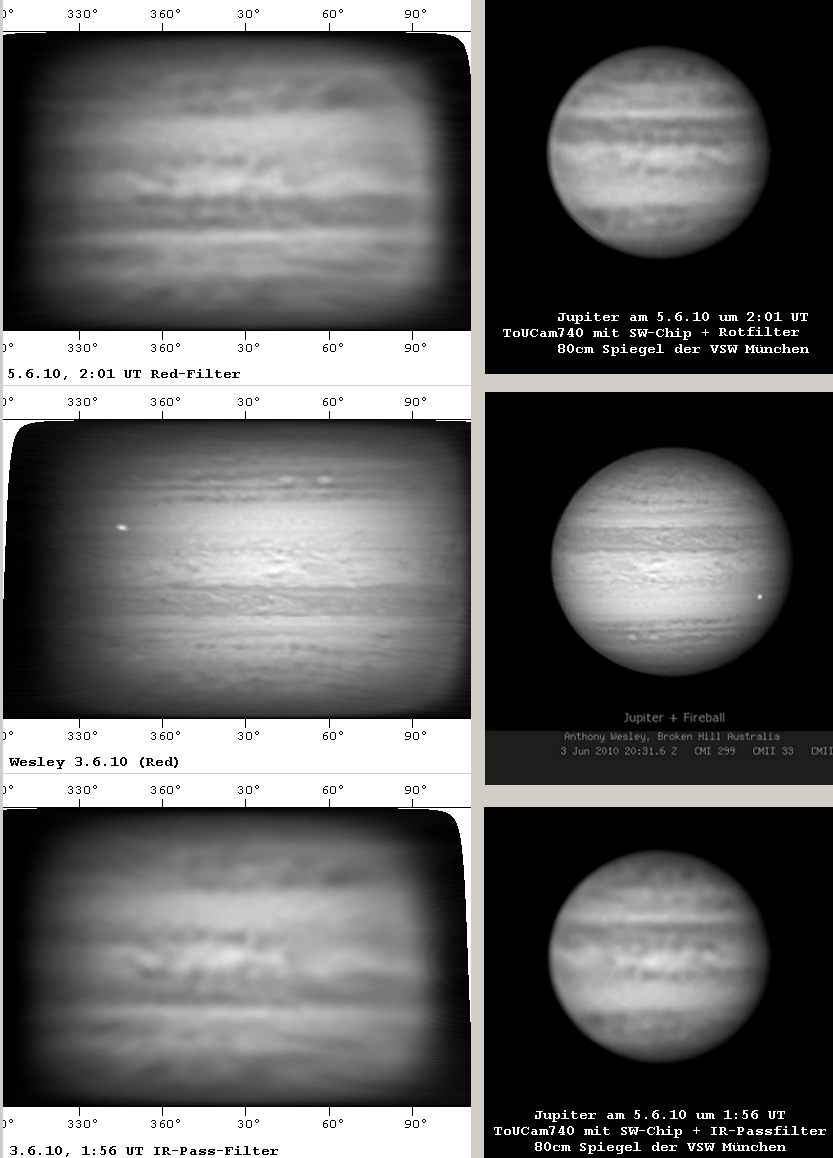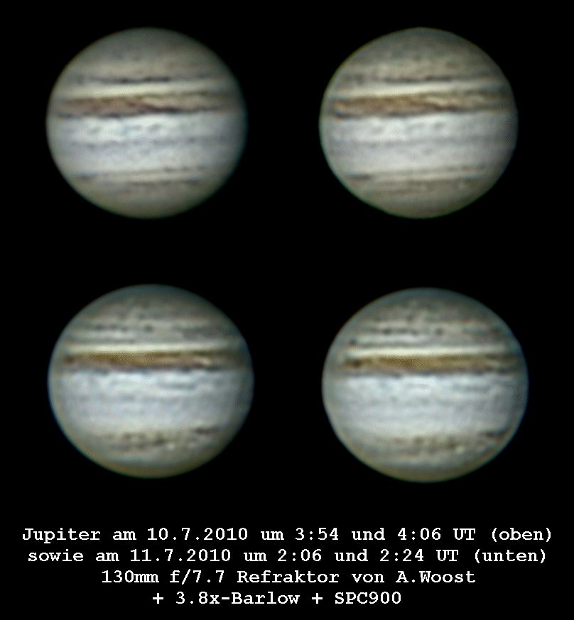 Am 3.6.10 überraschte A.Wesley mit der Beobachtung eines Jupiterimpakts.
