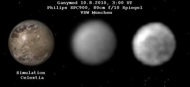 Man kann gut erkennen, dass Ganymed eine geringere Flächenhelligkeit