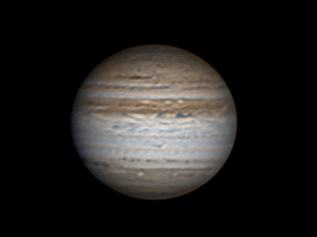 Normalerweise kann man schon mit kleinen Fernrohren auf dem Jupiter 2 große Streifen erkennen,