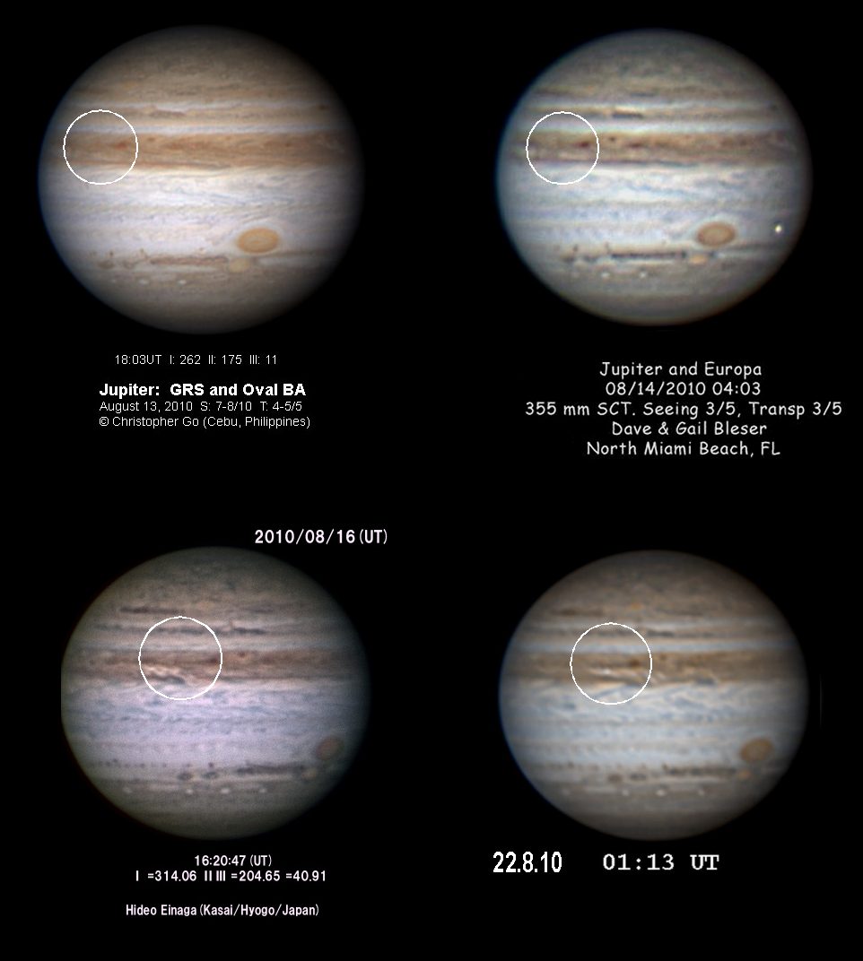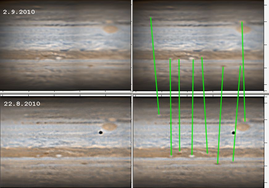 im Mai 2010 sehr dynamischen Jupiteratmosphäre. Hier zwischen dem 5.5. und 17.5.10: